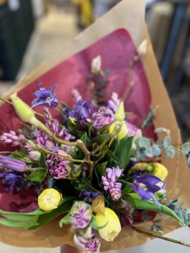Helena The Swedish Gardener skapar vårliga buketter med det lilla extra och säljer härliga vårblommor till utekrukorna. Förbeställ gärna din påskbukett på hennes tel nr 0739468152.